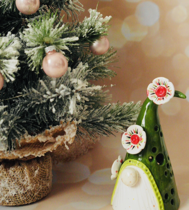 Photophore gnome de Noël en céramique